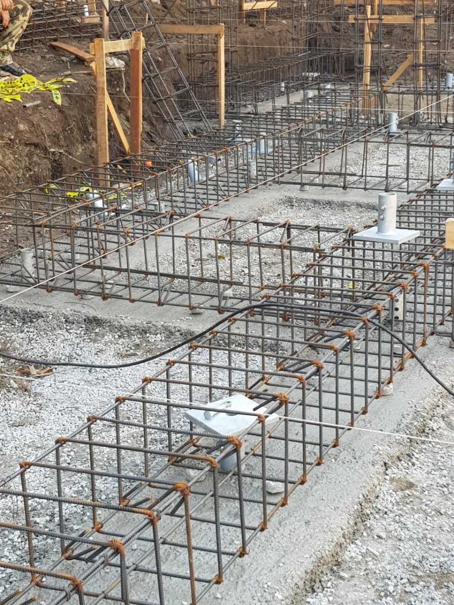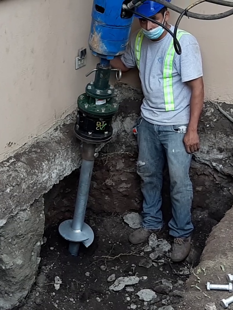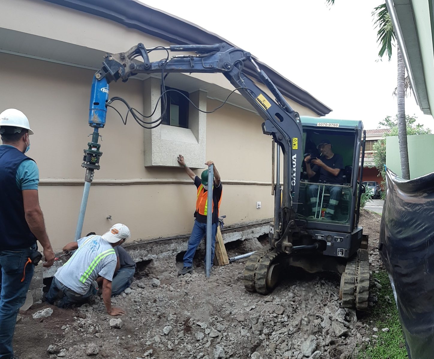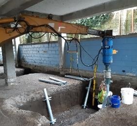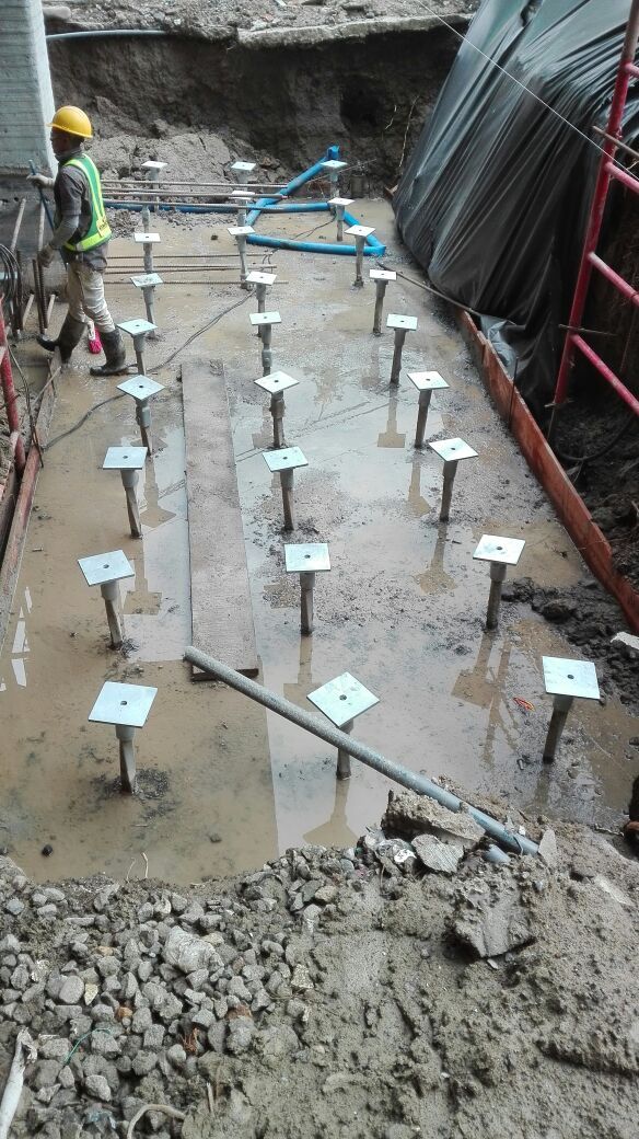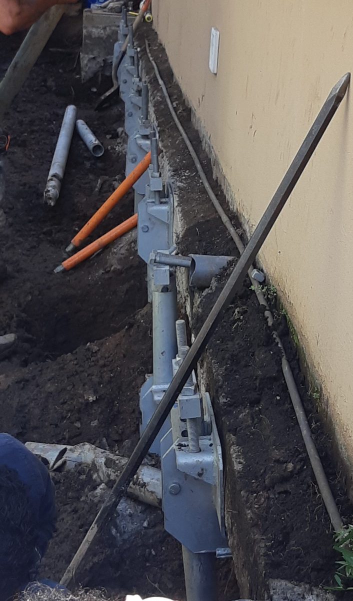 Instalación complicada en fundaciones existentes y bajo el entrepiso del edificio |