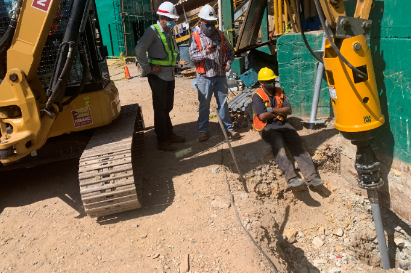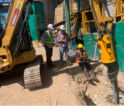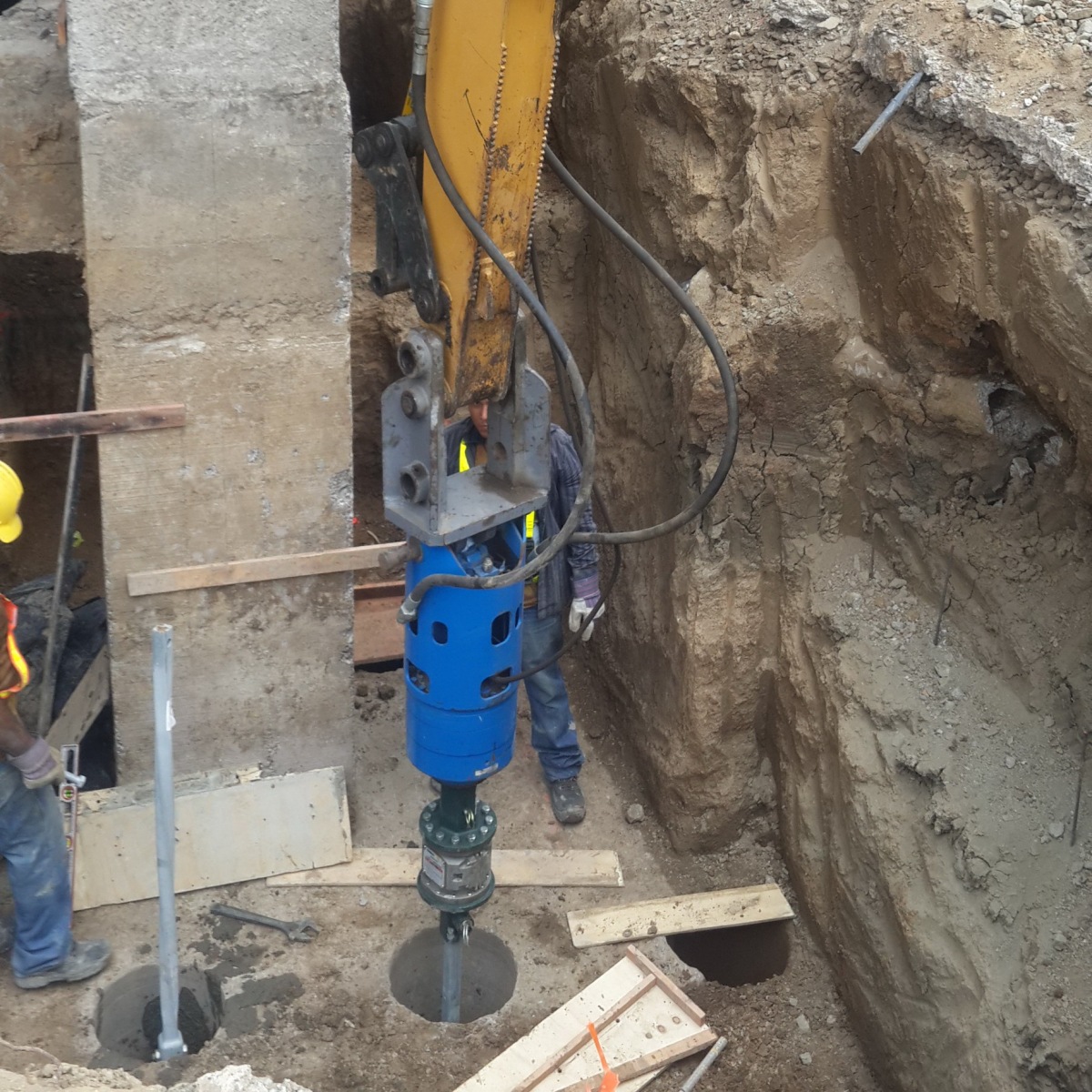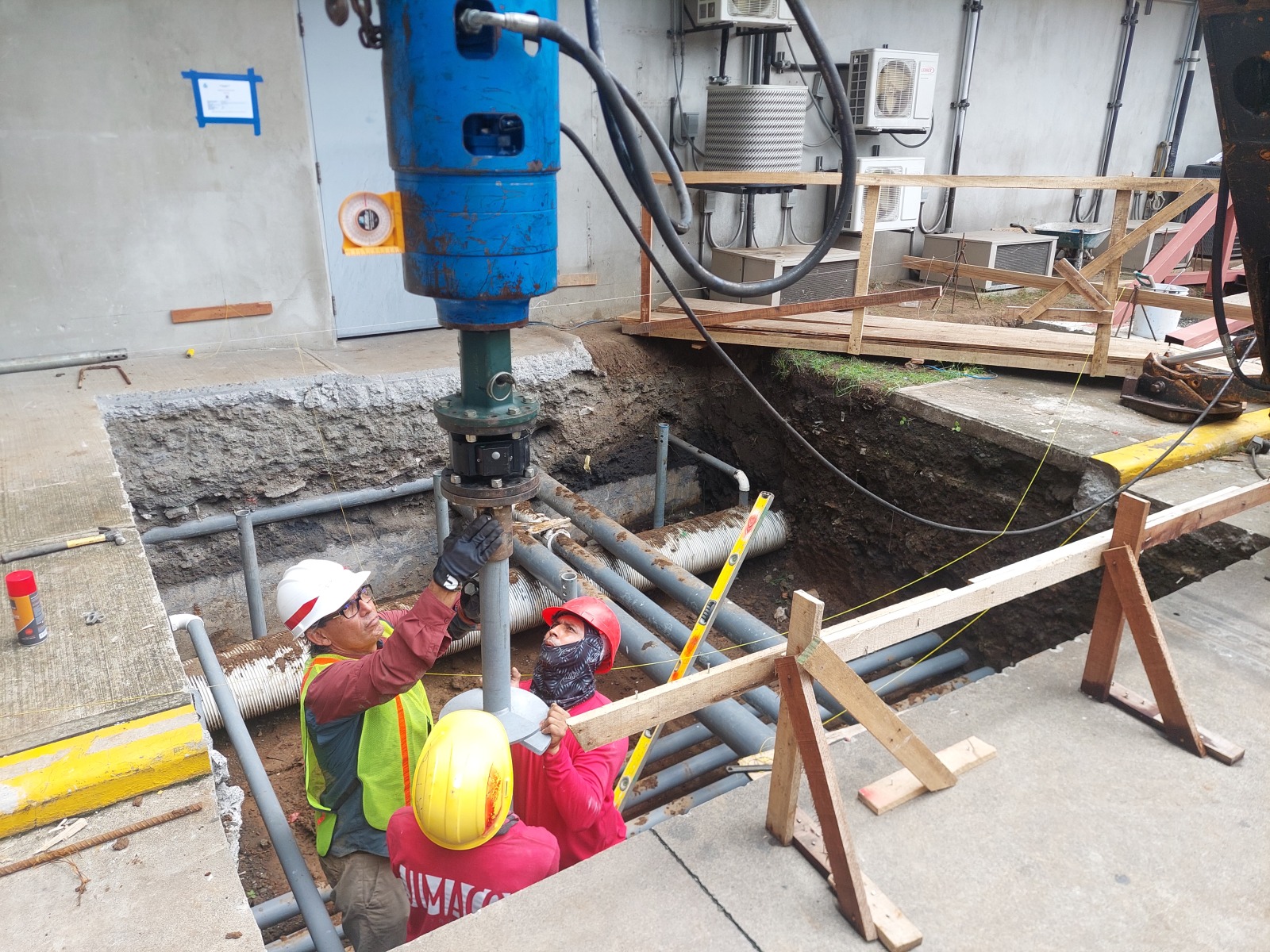 9 pilotes de entre 12 (3.6m) y 14ft (4.3m) para la losa de fundación de un ducto de elevadores el cual requería de pilotes debido a presencia de múltiples tuberías electromecánicas. |