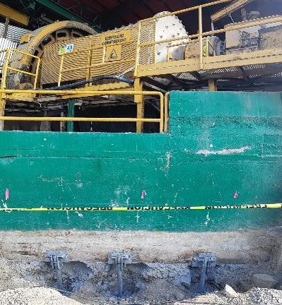 Se detiene el asentamiento diferencial de la losa que soporta el molino principal para procesamiento de material excavado y extracción de oro; sin detener u obstaculizar el funcionamiento del mismo. . |