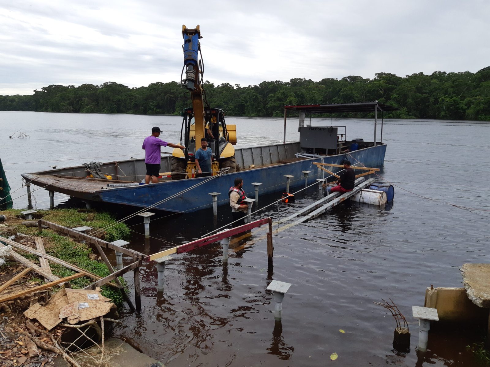 123 pilotes para casa guarda parques, 108 pilotes para Bodega, 38 pilotes para atracaderos y 46 pilotes para aceras; todos entre 3.5m y 10.5m de profundidad |